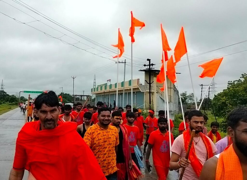 हिमायतनगर बजरंग दलची कावड यात्रा भर पावसात जय श्री रामाच्या गजरात संपन्न